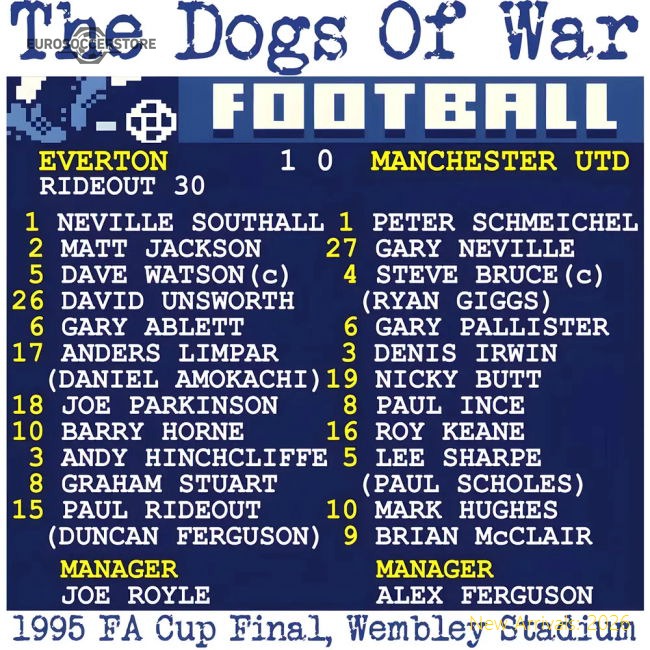 Everton had flirted with relegation in the League but new manager Joe Royle's 'Dogs of War' came out on top against a Manchester United side deprived of the services of Eric Cantona through suspension for his infamous kung-fu-style attack on a Crystal Palace fan earlier in the season.